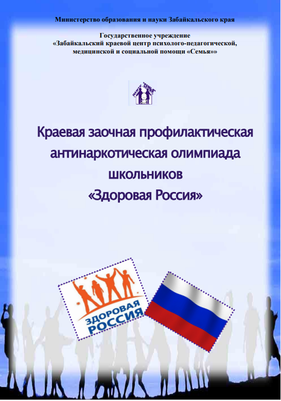 В соответствии с Календарем образовательных и воспитательных событий с детьми и молодежью в Забайкальском крае, а также приказом Министерства образования и науки Забайкальского края от 21.10.2024 г. проводится краевая заочная антинаркотическая олимпиада школьников Забайкальского края «Здоровая Россия».