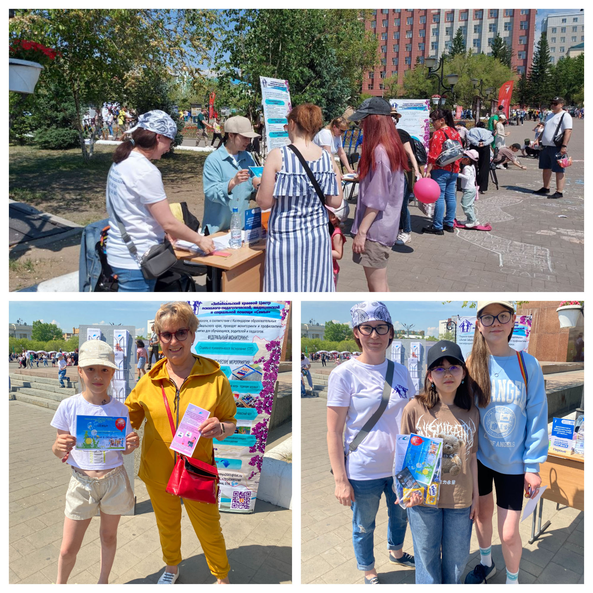1 июня 2024 г. специалисты ГУ "Центр "Семья" организовали интерактивную площадку для семей в честь празднования Международного Дня защиты детей на площади им. Ленина. На площадке были представлены три станции: "Знаем-играем", "Рисуем вместе", "Доверие", в которых могли поучаствовать все желающие. Общее количество участников составило 101 человек, из них 40 родителей и 61 ребенок до 18 лет. 👪